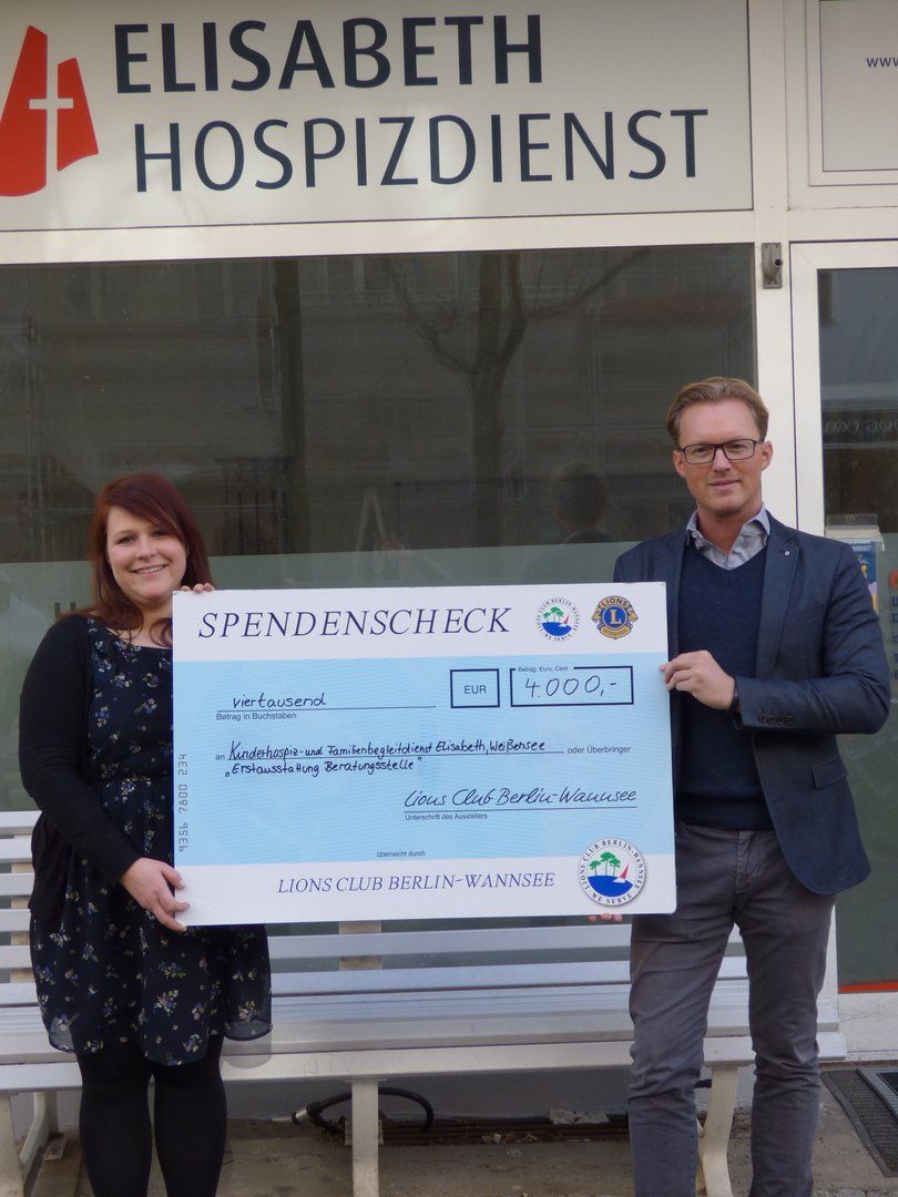 Am heutigen Nikolaustag freuen wir uns, wieder zusammen mit dem Lions Club Berlin-Wannsee, der sich vor allem die Hilfe für Kinder und Jugendliche auf die Fahne geschrieben hat, zwei Spendenchecks in Höhe von 1200 EURO an das SchutzengelWerk Berlin-Steglitz für das Projekt "Sternenkinder" und den Stephanus-Kinderhospizdienst übergeben zu dürfen.