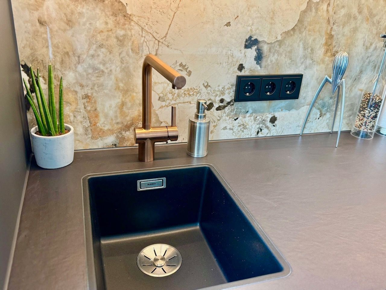 Besonder hervorzuheben sind die ausgewählten Materialien, hochwertigen Armaturen und schönen Details wie die retro Bakelitschalter, die historischen Kappendecken und die eleganten Deckenspots.